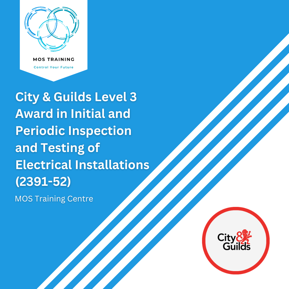 The City & Guilds Level 3 Award in Initial and Periodic Inspection and Testing of Electrical Installations (2391-52) is delivered by MOS Training as a focused 5-day face-to-face course.